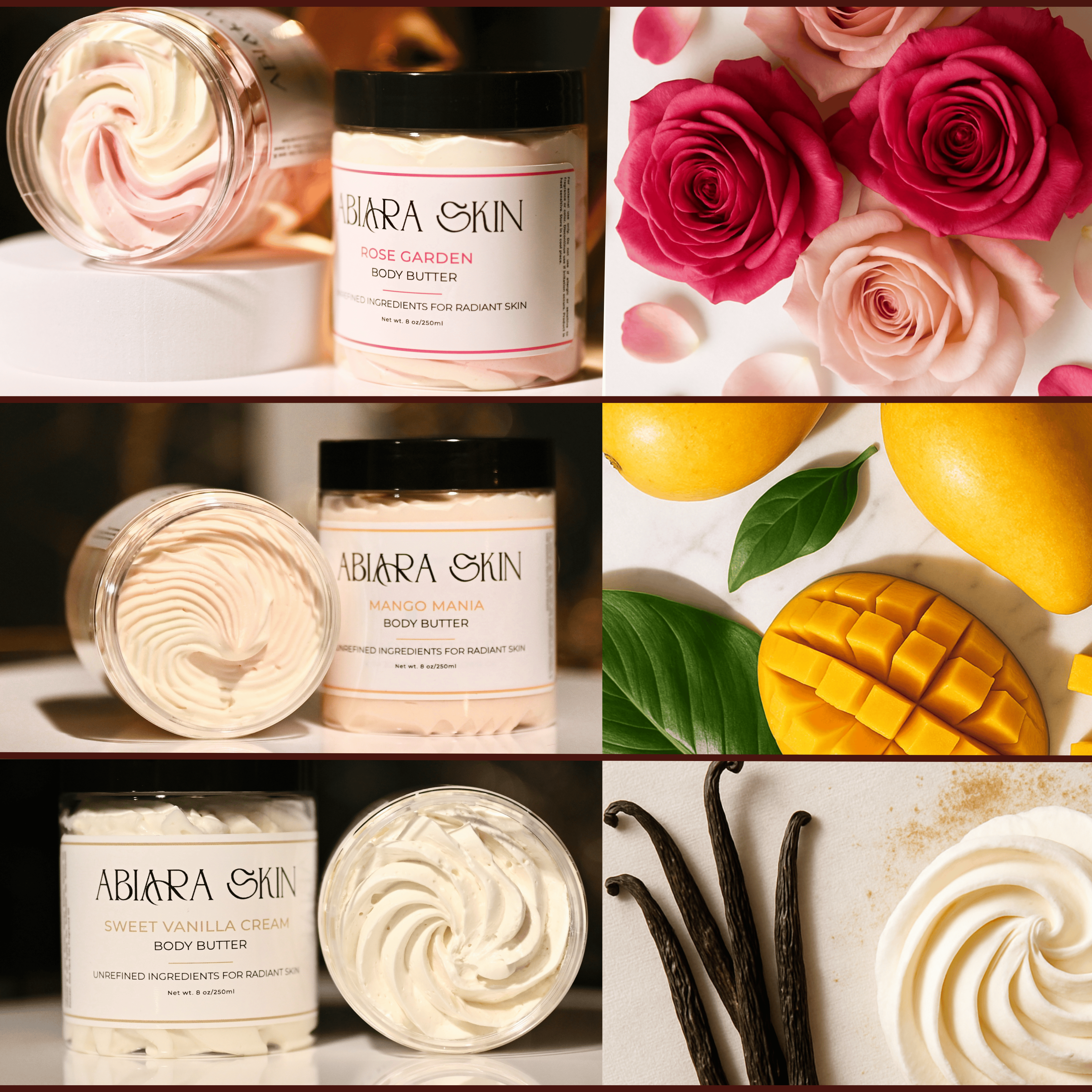 Light, airy, and whipped to perfection, our community-favorite body butters melt into the skin, delivering deep hydration with a weightless feel. They are loved by our customers for their luxurious touch and a noticeable lasting glow.